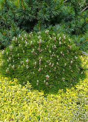Gömb alakú, idősebb korban széles elterülő növekedésű törpefenyő. Lombozata sűrű. 1,5-2 m magasra és szélesre nő meg. Tűi sötétzöldek, 2-4,5 cm-esek, merevek. Igényei az alapfaj igényeivel megegyeznek.